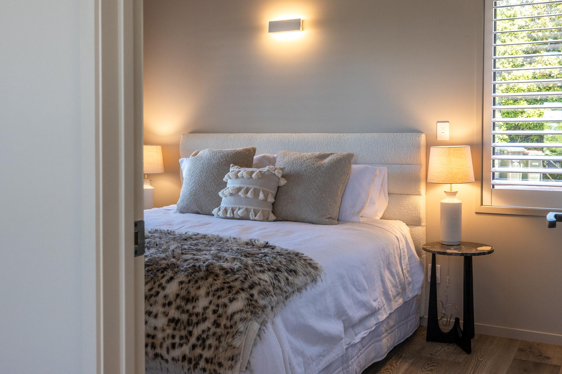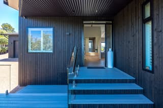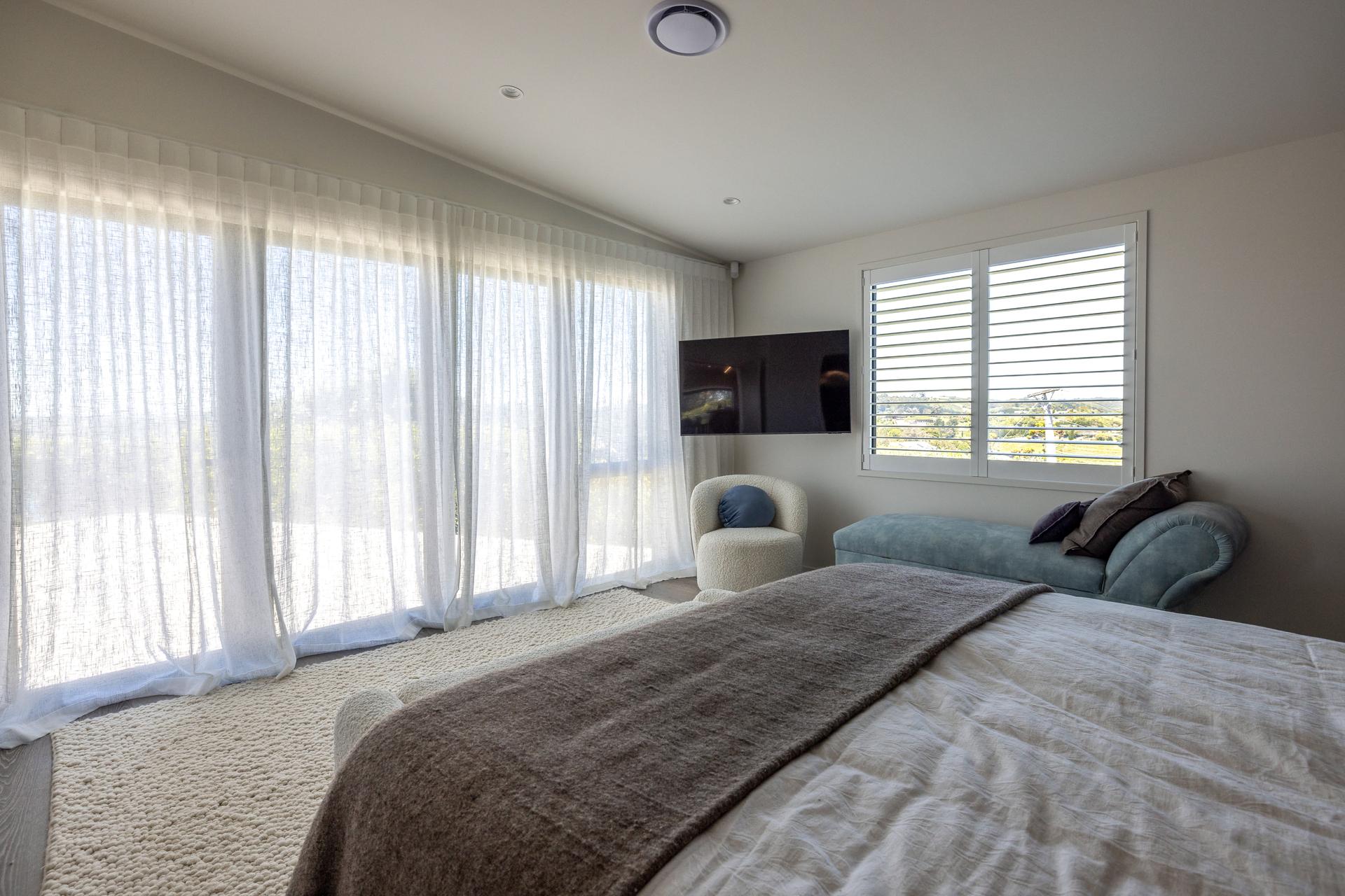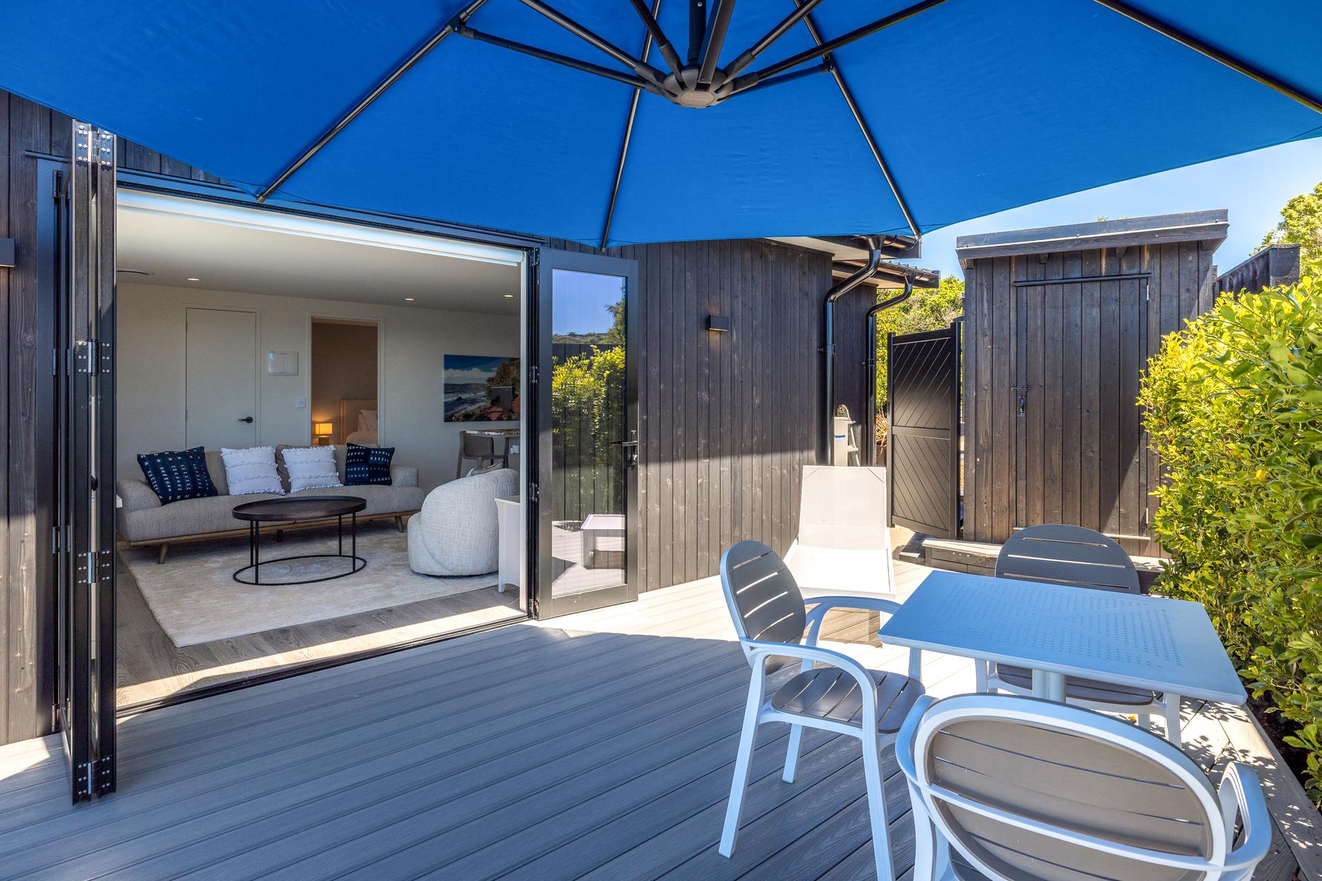 Thoughtfully designed for modern living, the main house embraces light, space, and seamless indoor/outdoor flow. The open-plan kitchen, dining, and lounge area — complete with a piano for guests to enjoy — forms the social heart of the home. This space extends onto generous deck areas with adjustable louvers, creating a true all-season outdoor living zone.