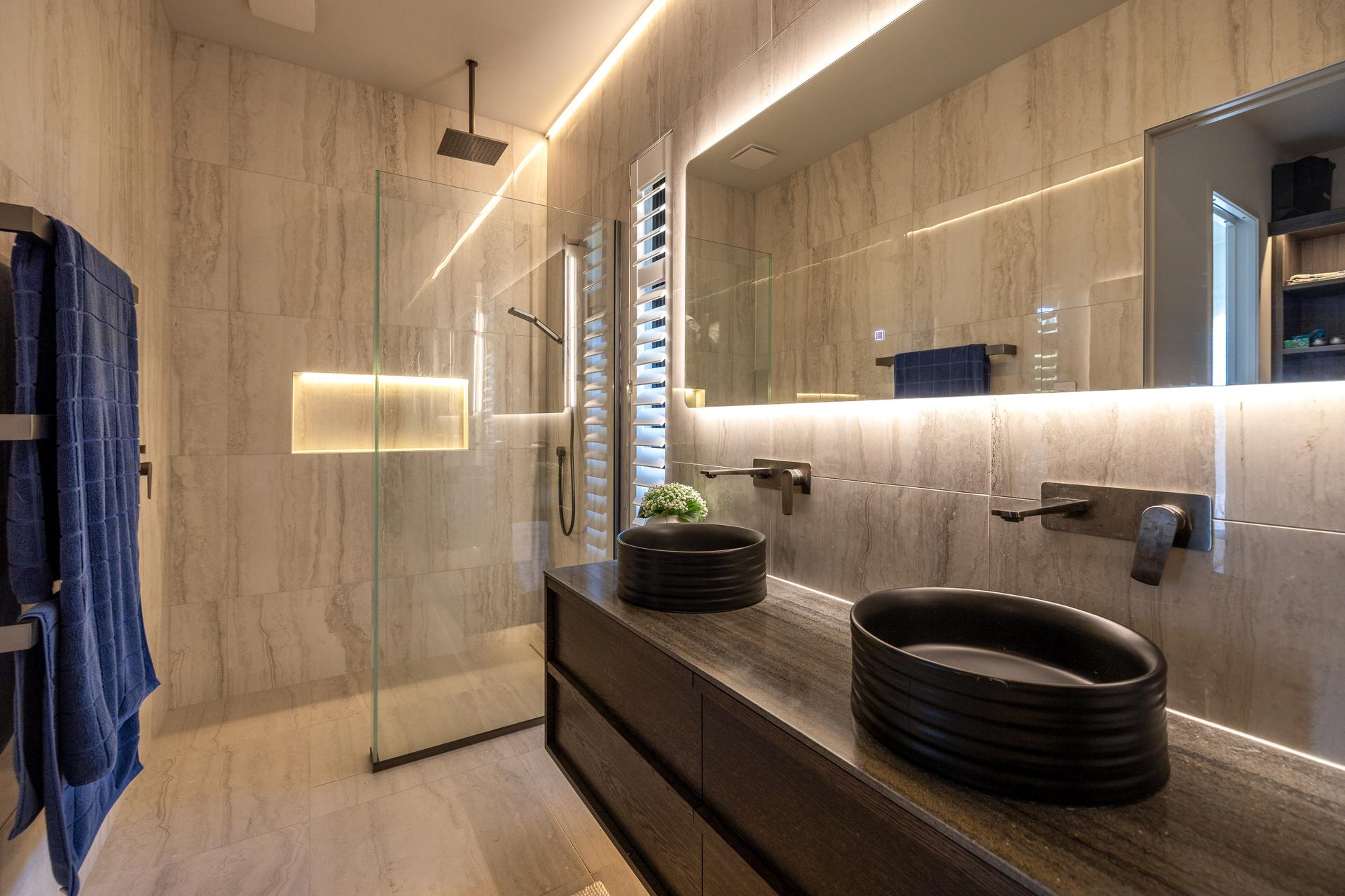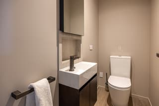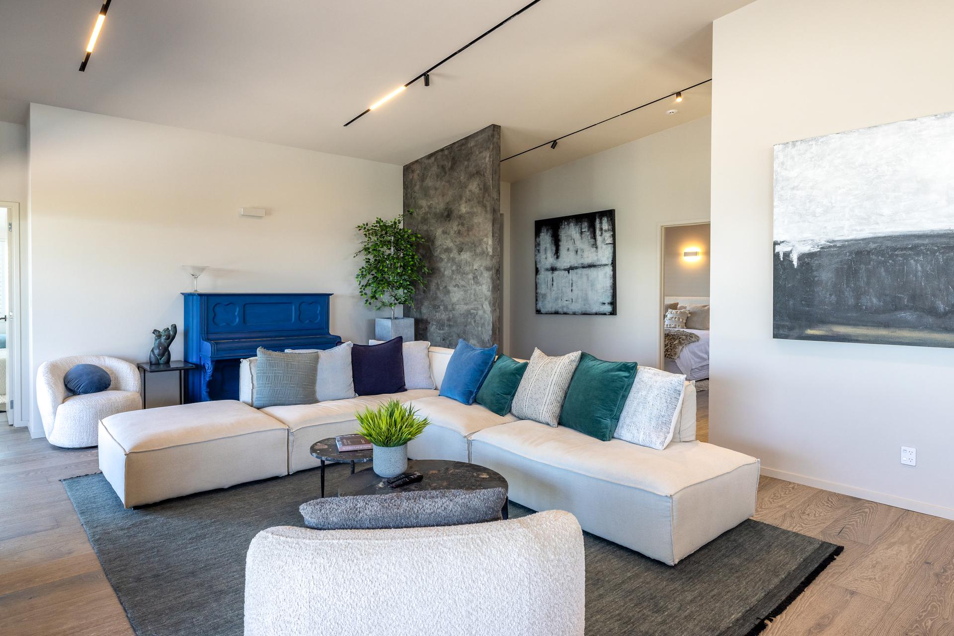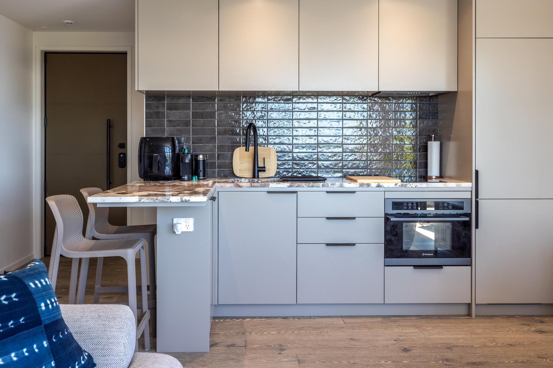 Thoughtfully designed for modern living, the main house embraces light, space, and seamless indoor/outdoor flow. The open-plan kitchen, dining, and lounge area — complete with a piano for guests to enjoy — forms the social heart of the home. This space extends onto generous deck areas with adjustable louvers, creating a true all-season outdoor living zone.