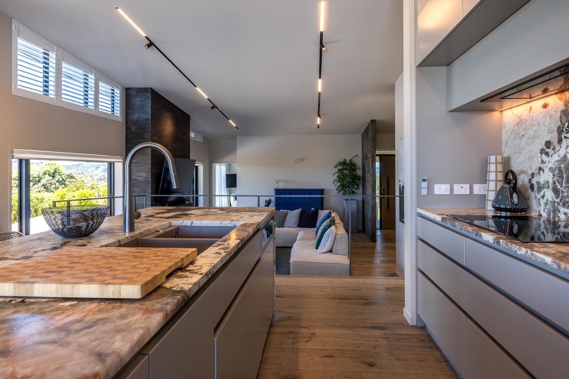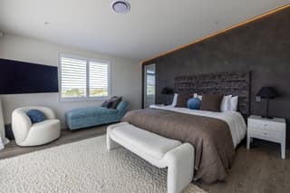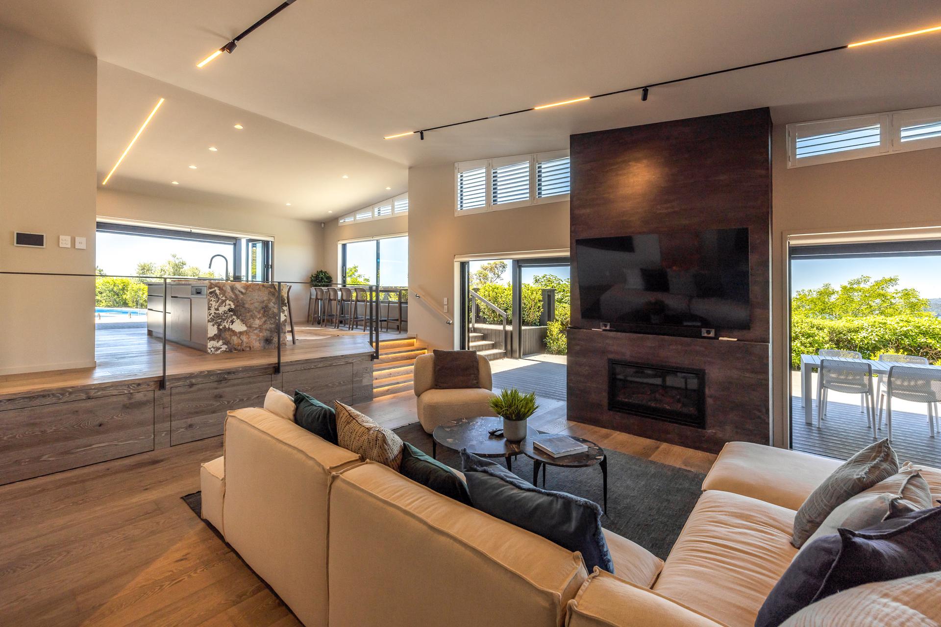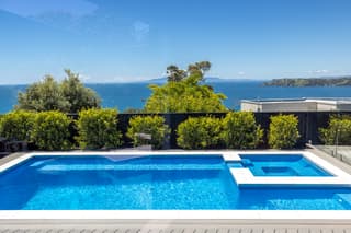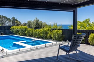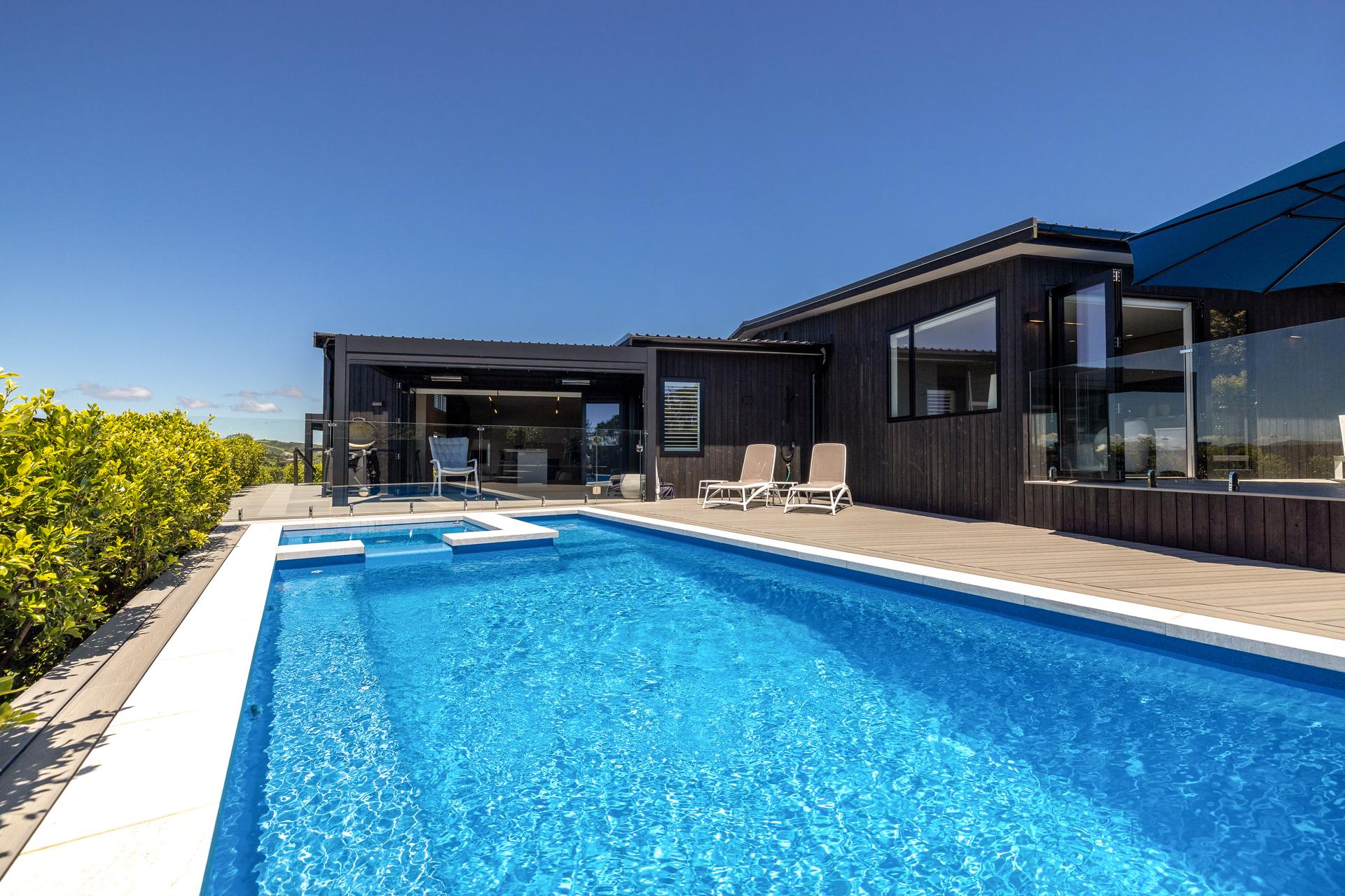 Set high above Sea View Road at the end of a sweeping private drive, this brand-new property is an oasis of contemporary luxury. As you walk into the main living areas, you are met with uninterrupted views stretching from Onetangi Beach to the Coromandel and Great Barrier Island, as well as back across the rolling vineyards of Waiheke.