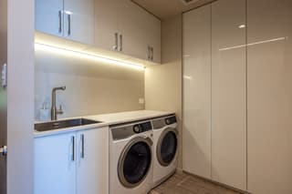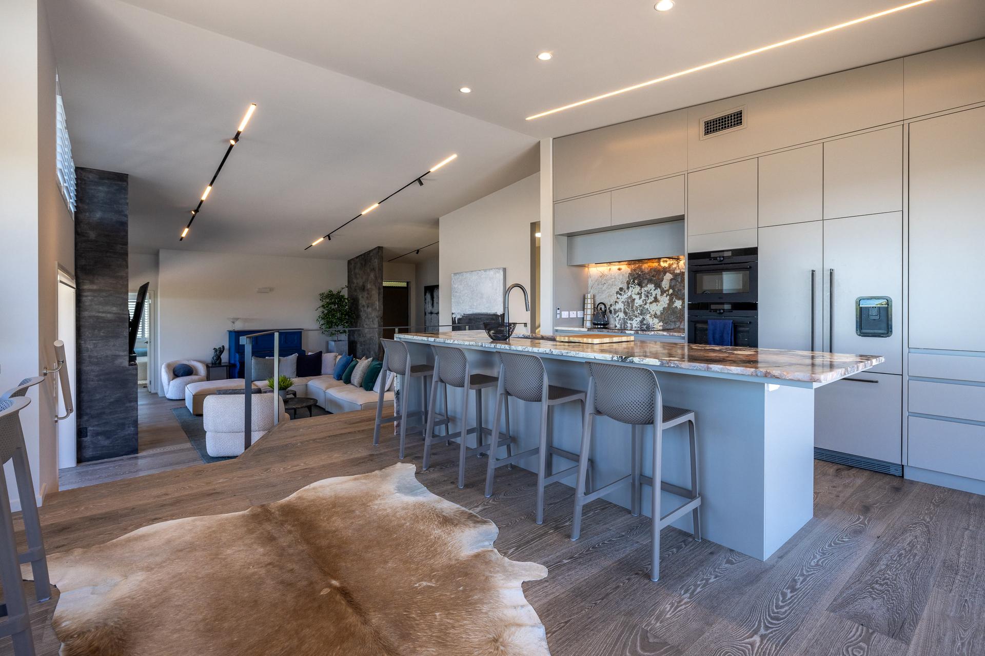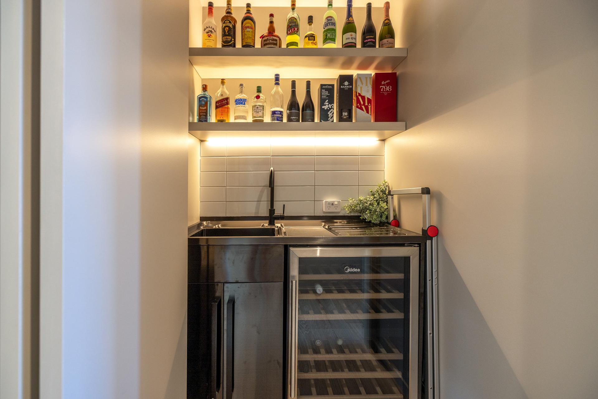 Behind the kitchen, a separate wet bar room provides an additional entertaining feature, ideal for preparing drinks while keeping the kitchen clear and social spaces connected.