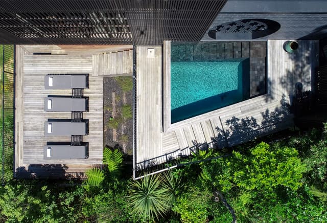 To top it all off there is an outdoor shower and a secret garden through the bush with additional outdoor dining and pentanque court.