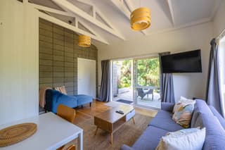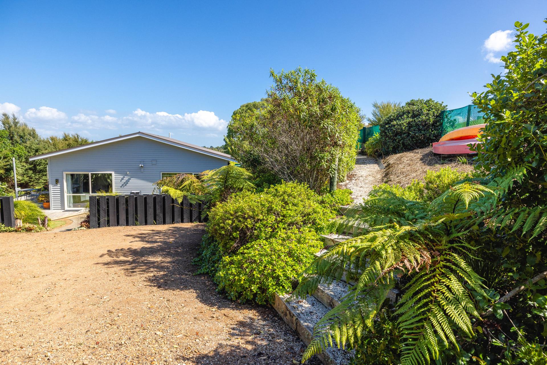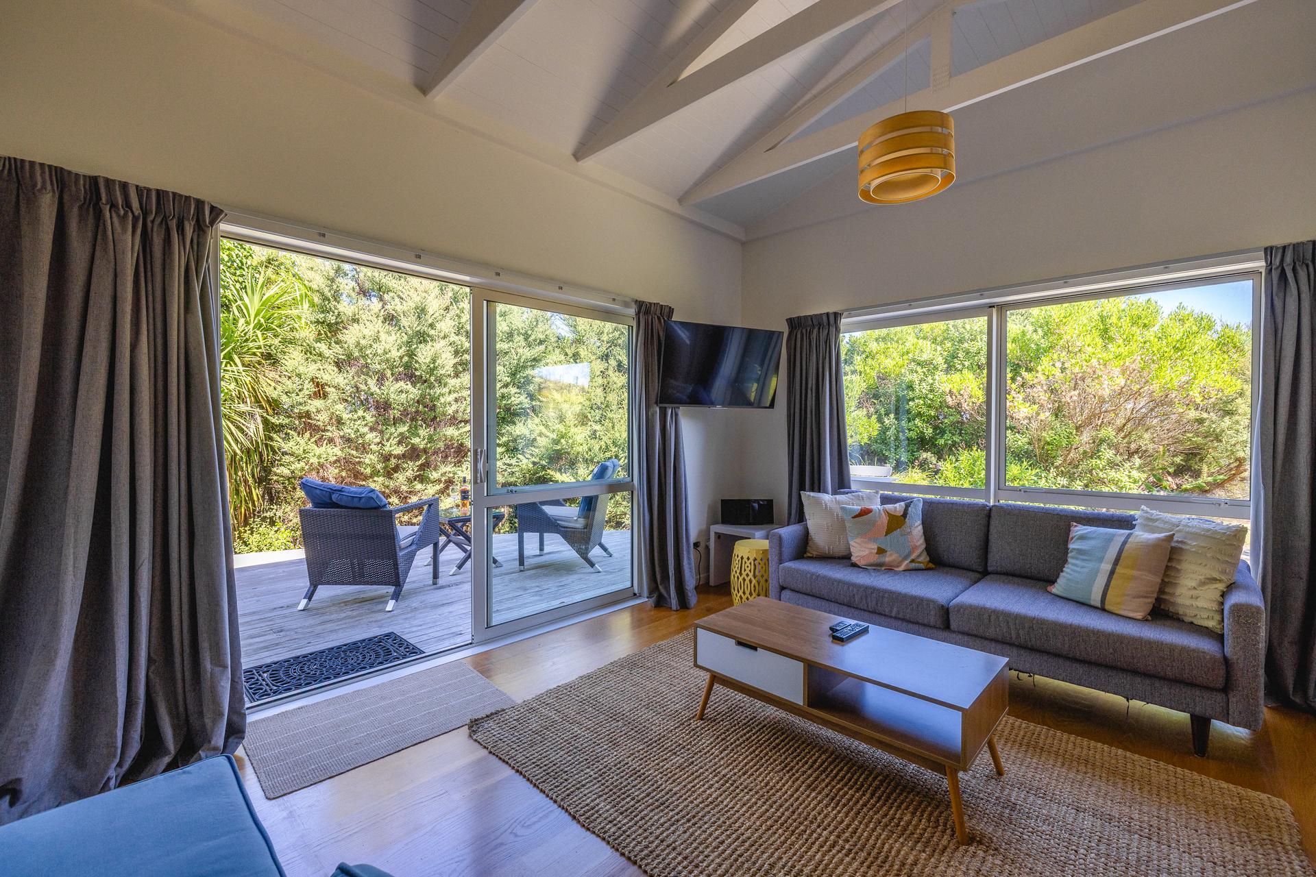 Perched high above Putiki Bay, Fairview Apartment offers a serene, contemporary escape on a tranquil ten-acre property.