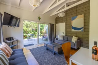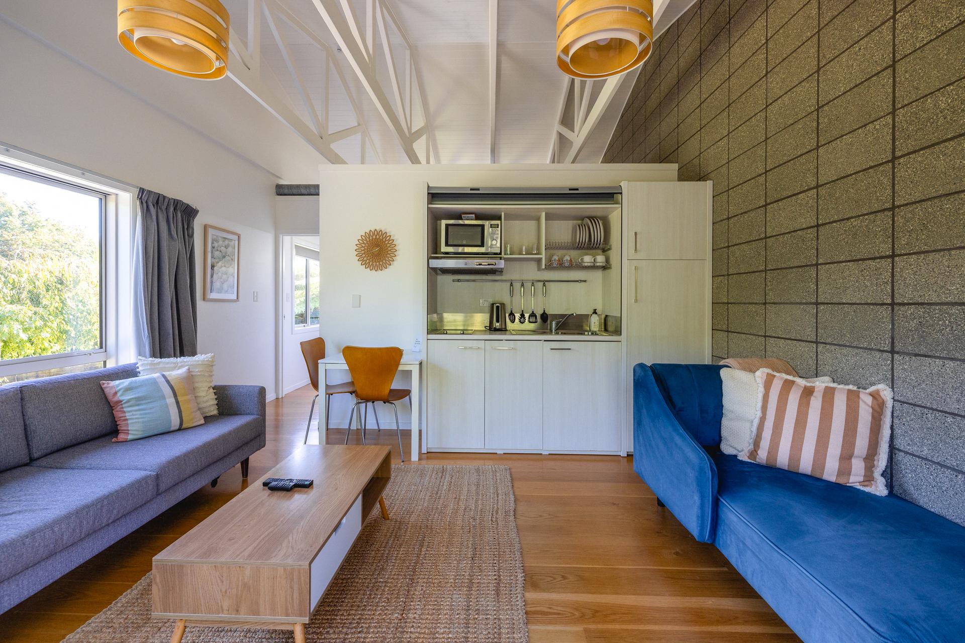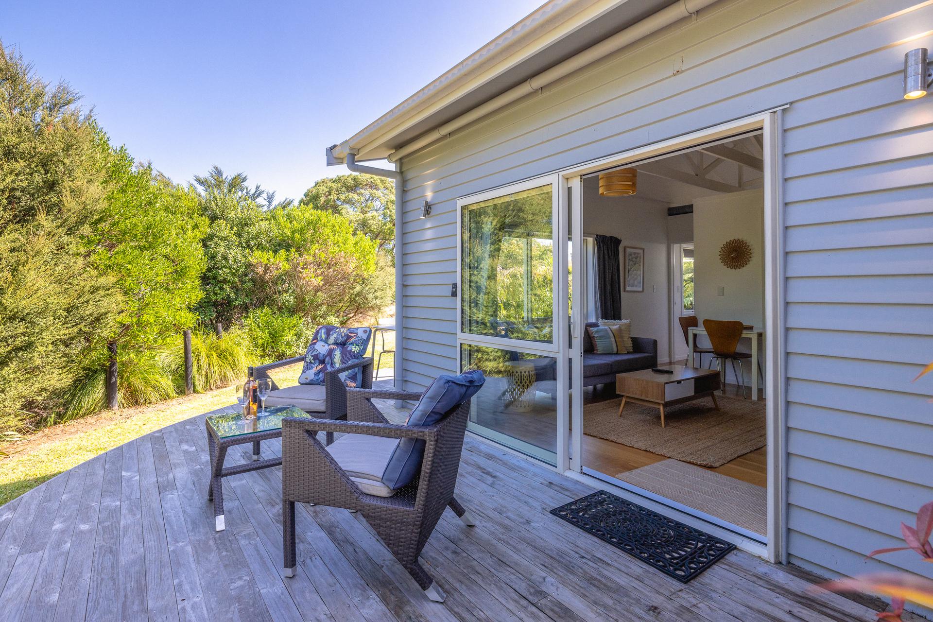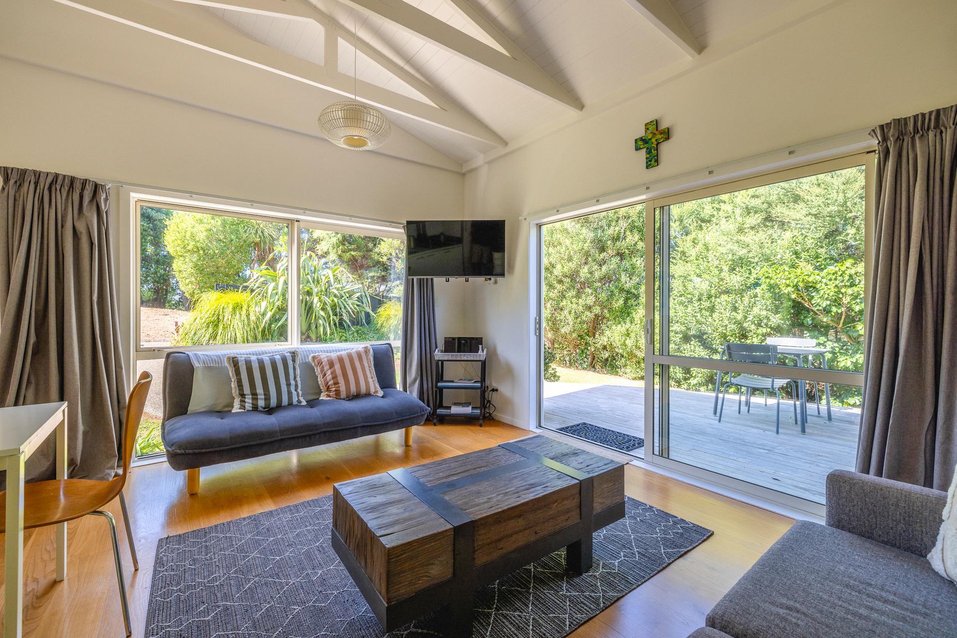 Perched high above Putiki Bay, Fairview Apartment offers a serene, contemporary escape on a tranquil ten-acre property.