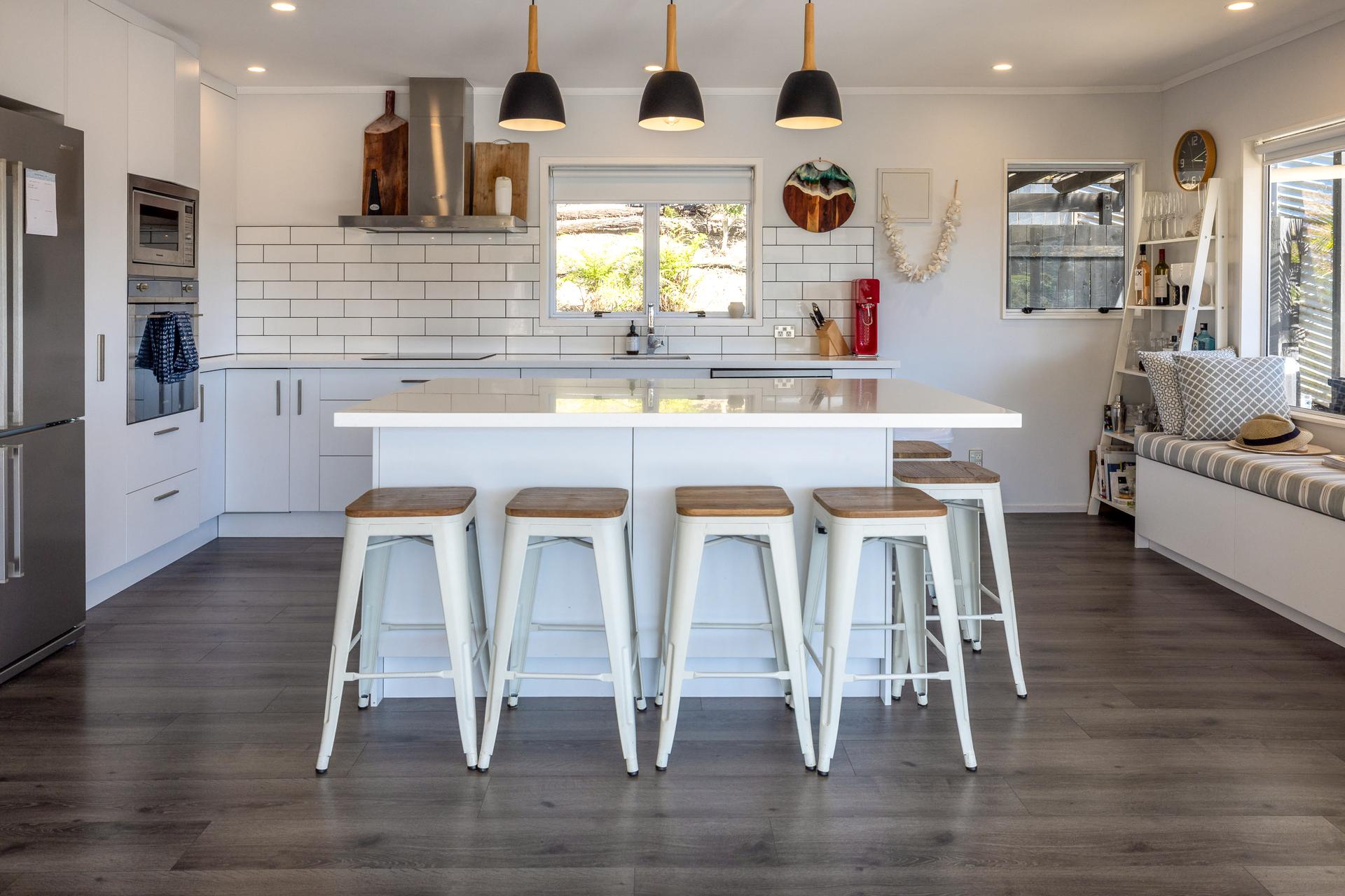 Step inside and enjoy light-filled spaces, modern furnishings, and stunning outlooks that capture the essence of Waiheke’s laid-back charm. The home features three well-designed bedrooms: