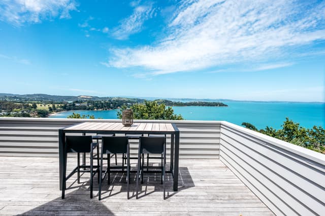 This spacious holiday house is located in central Oneroa, offering stunning views over both Oneroa Bay and Little Oneroa Bay. Designed for comfort and full of family memories, the house (affectionately known as Trelawny) features a double huge deck perfect for outdoor living and entertaining.